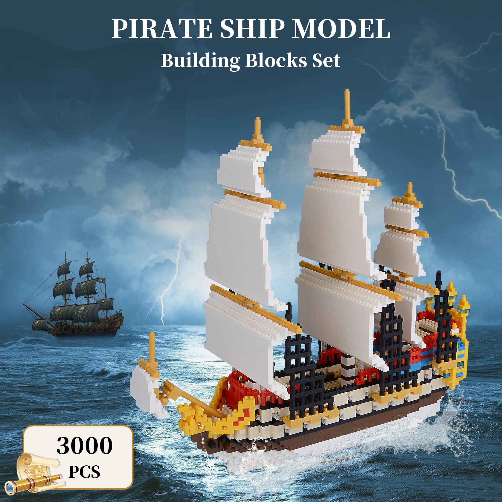 Amazon Com Geniteen Building Blocks Set Pirates Ship Model Building Blocks Kits 3000 Pcs Creative Sailboat Micro Mini Blocks Toys Games