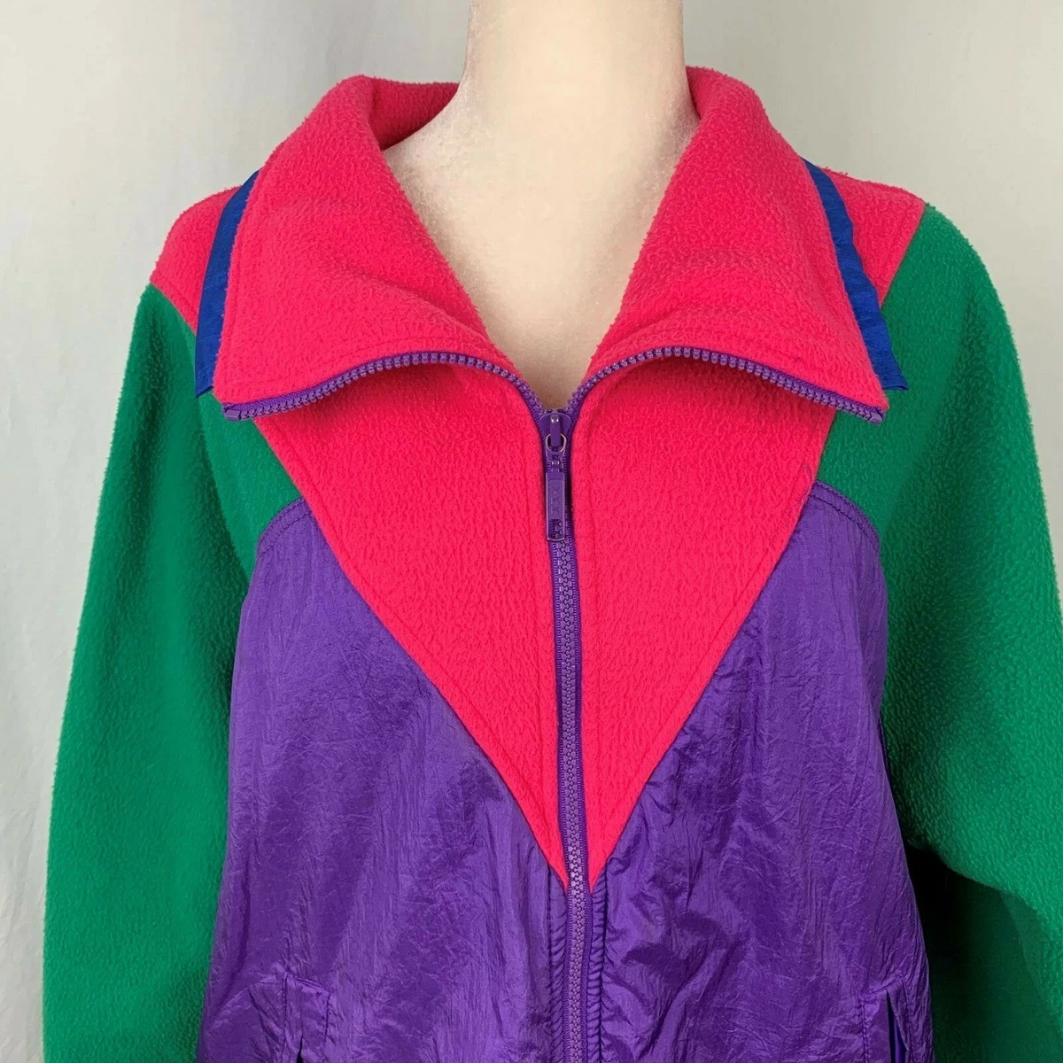 Vintage 80s Fleece Nylon Full Zip L Jacket Color Block Pink Green Purple Ebay