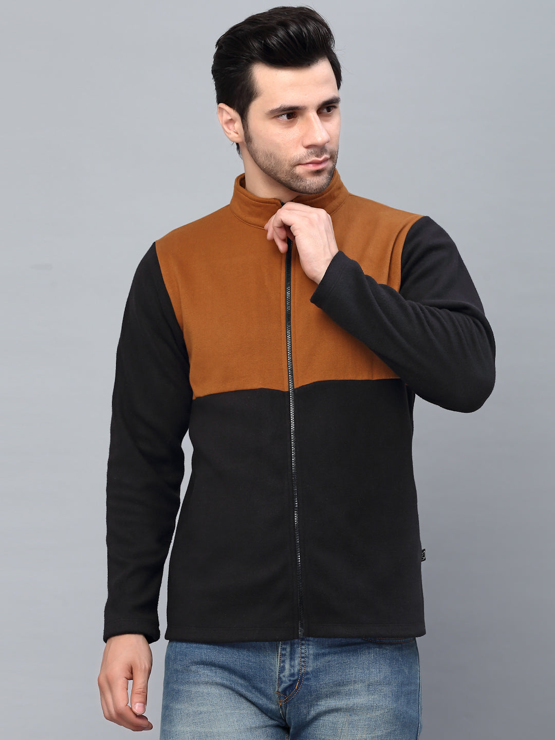 Color Blocked High Neck Polar Fleece Jacket Rigoindia